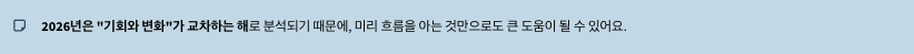 특히 2026년은 “기회와 변화”가 교차하는 해로 분석되기 때문에,