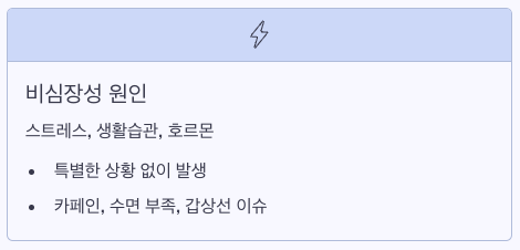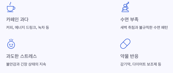 | 생활습관 요인 | 카페인 과다, 수면 부족, 과도한 음주 | 습관 교정 시 빠르게 호전 |