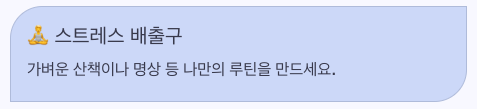 운동·산책·가벼운 명상 등 본인에게 맞는 루틴을 하나 정해두면 장기적으로 안정됩니다.