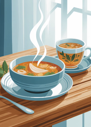 이럴 때는 소화 부담이 적고, 따뜻하며, 자극이 없는 음식이 우선입니다.