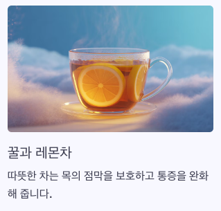 - 따뜻한 차, 꿀·레몬 물이 도움이 되고,