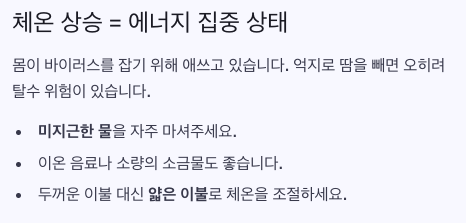 - 체온이 오르면 몸은 바이러스를 잡기 위해 에너지를 집중시키는 중입니다.