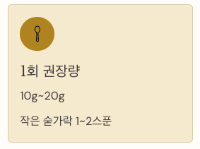 - 성인 기준 1회 10g~20g, 하루 1~2회