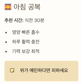 - 영양이 빠르게 흡수되며, 하루 활동에 필요한 기력을 채우기 좋습니다.