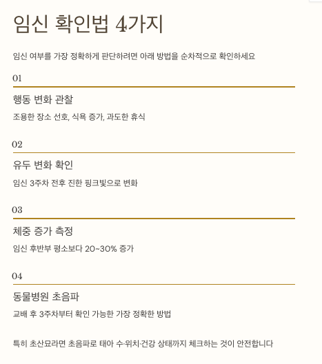 임신주기 전체 흐름을 정확히 이해하는 것이 보호자에게 큰 도움이 됩니다.