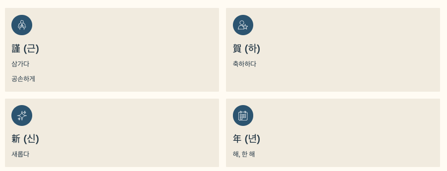 👉 그래서 謹賀新年은 “공손하게 새해를 축하한다”는 의미가 됩니다.