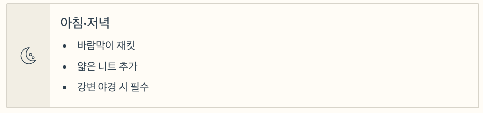 - 쌀쌀함 느끼면 얇은 니트 1장 추가