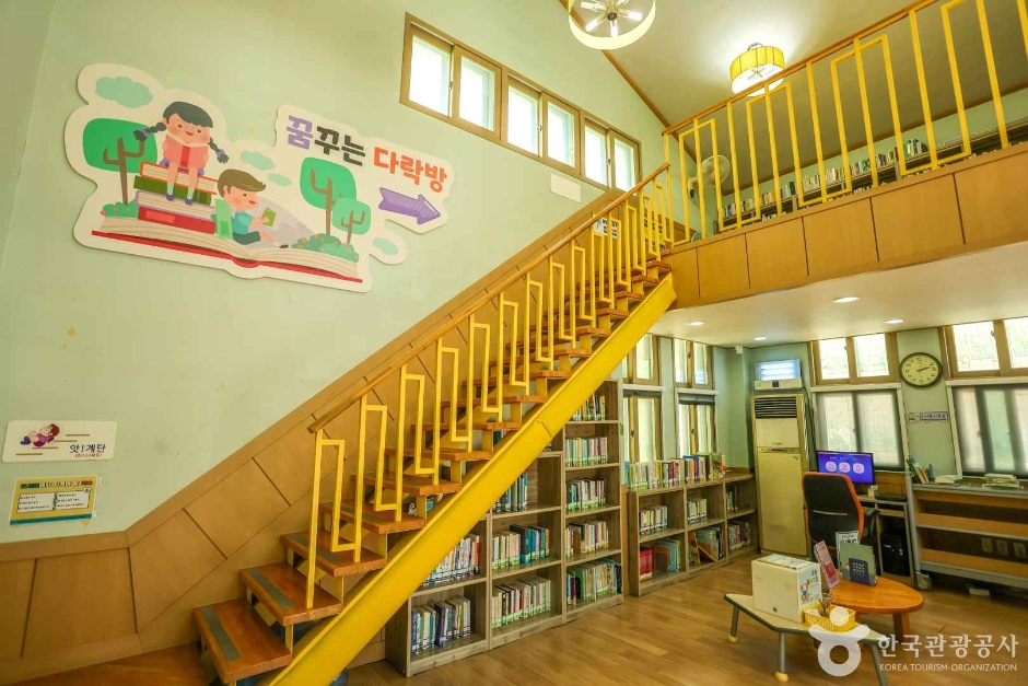 규모는 작지만 알차게 구성된 내부 가 인상적입니다. '도란도란 이야기방', '꿈꾸는 다락방' 등 여러 특색 있는 공간으로 이루어져 있어요. 문학, 역사, 예술 등 다양한 분야의 책들이 가득해 취향에 맞는 책을 고르는 재미도 쏠쏠합니다.