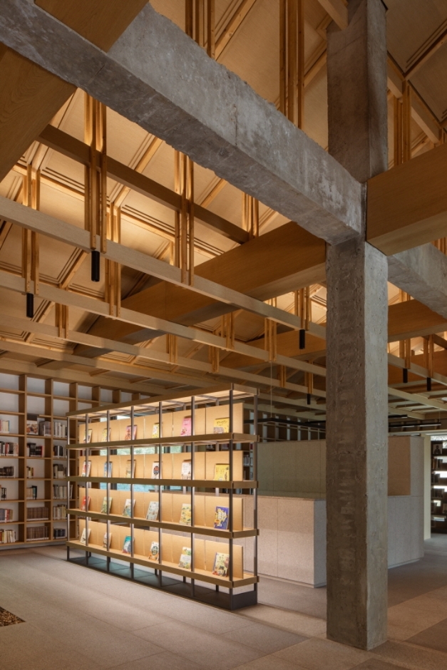 2층 구조로 이루어진 이 도서관의 1층에서는 다양한 큐레이션과 전시가 진행 되고 있어요. 단순히 책만 읽는 공간이 아닌, 다채로운 문화를 경험할 수 있는 공간이라는 점이 매력적입니다. 더 많은 책을 만나고 싶다면 2층의 종합자료실로 올라가보세요.