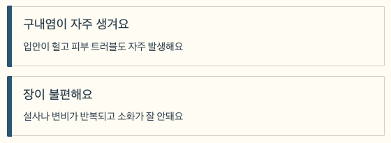 - 장 건강이 안 좋아 자주 설사 or 변비