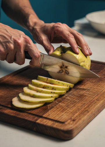 - 모과를 얇게 썰기