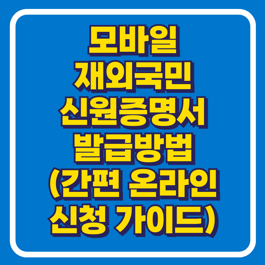 모바일 재외국민 신원증명서는 IC 신원증명서를 활용하거나 온라인 신청을 통해 발급받을 수 있습니다. 두 가지 방식 중 본인에게 맞는 방법을 선택하면 됩니다!