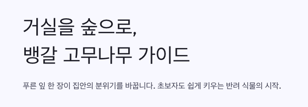 집에 푸른 식물이 하나 놓여 있으면 분위기가 확 달라지죠. 특히 거실은 가족이 머무는 시간이 길어 적당한 식물을 배치하기 좋은 공간입니다. 그중에서도 뱅갈 고무나무는 실내에서 키우기 쉽고, 공기 정화 능력이 뛰어나 거실 식물로 특히 인기입니다.