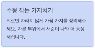 - 잎 닦기·가끔 가지치기