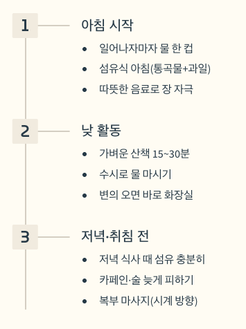 3) 변비 해결방법 루틴(초간단 일상 팁)