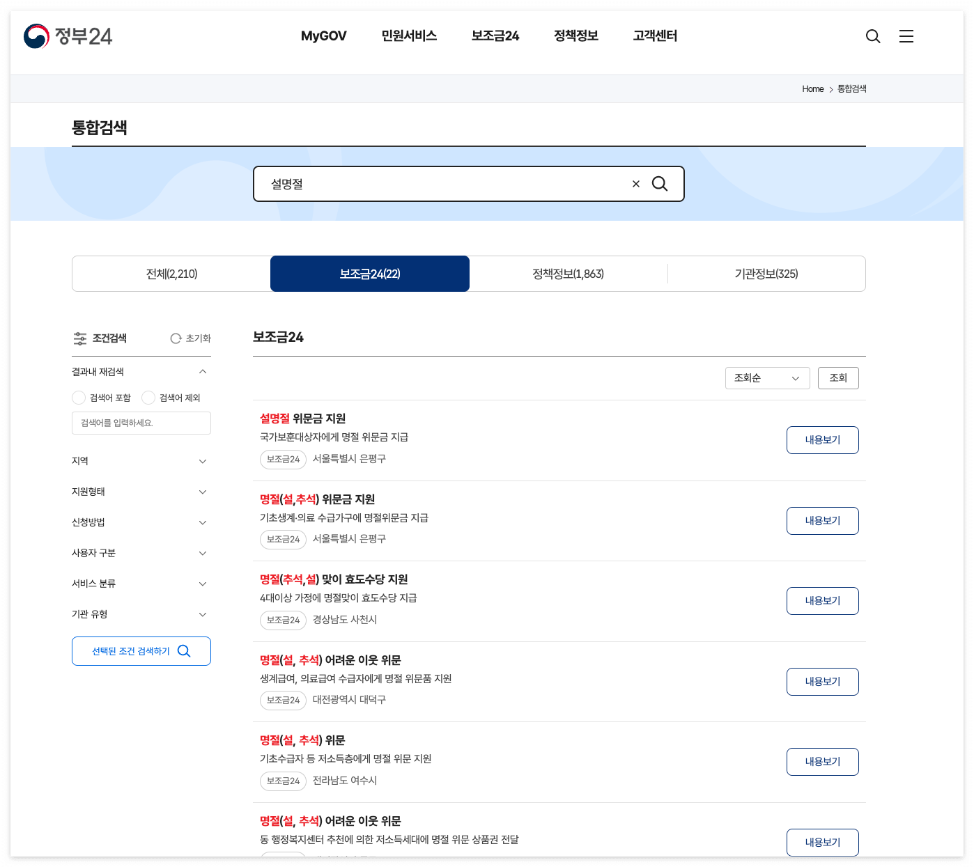 - 정부24 내 ‘신청 내역 조회’