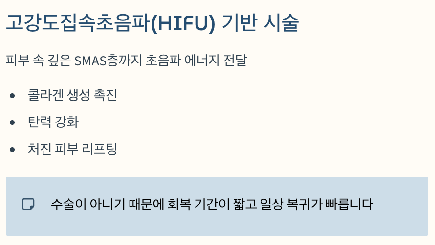 – 초음파 에너지로 피부 진피층과 SMAS층 자극