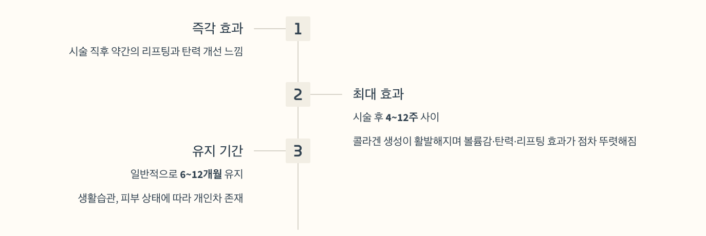 → 볼륨감·탄력·리프팅 효과가 점차 뚜렷해짐