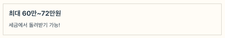 - 최대 약 60만~72만 원 정도를 세금에서 빼줍니다!