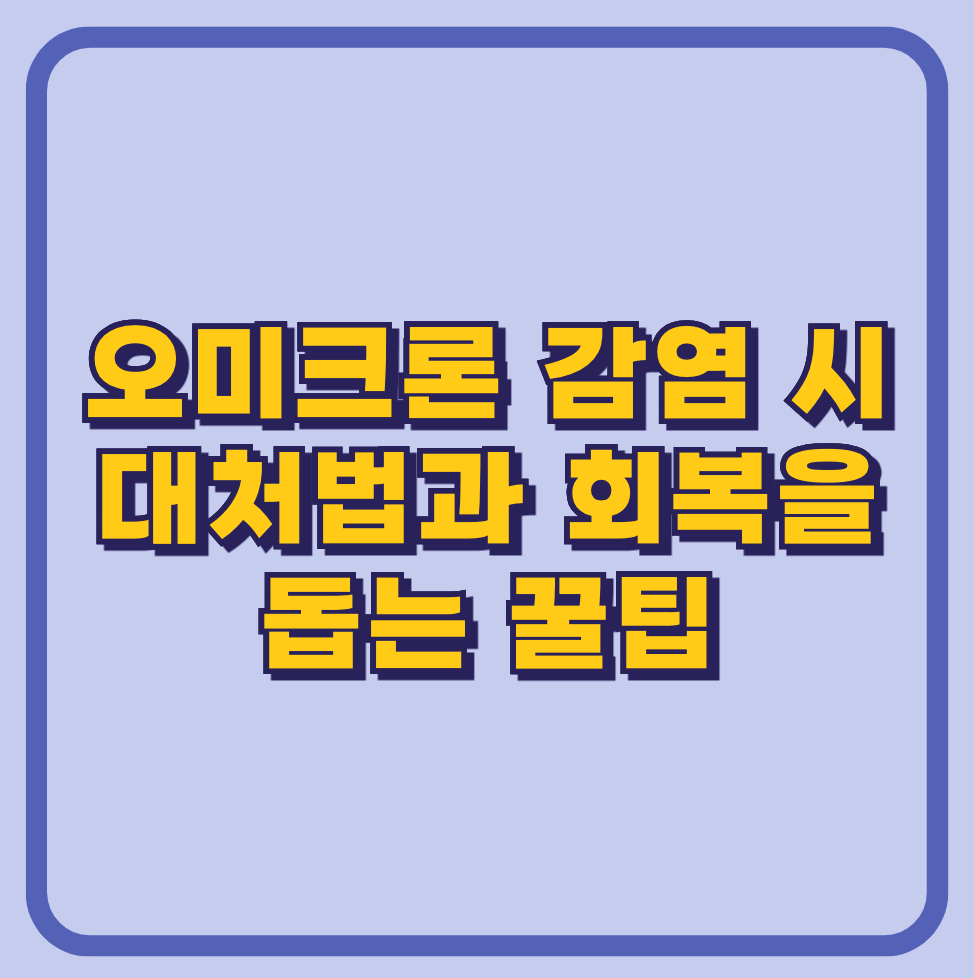 오미크론 변이는 전파력이 강하고 증상이 비교적 경미하다고 알려졌습니다. 하지만 고위험군에게는 여전히 치명적일 수 있으므로 주의가 필요합니다. 본 포스팅에서는 오미크론 감염 시 효과적으로 대처할 수 있는 방법을 단계별로 소개합니다.