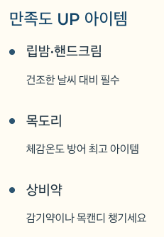 - 상대습도(1월): 61% → 건조하게 느껴질 수 있음