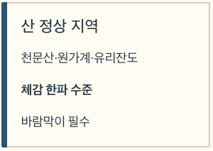 하지만 산 정상/유리잔도/케이블카 구간은 ‘체감 한파’까지 고려하는 게 안전합니다.