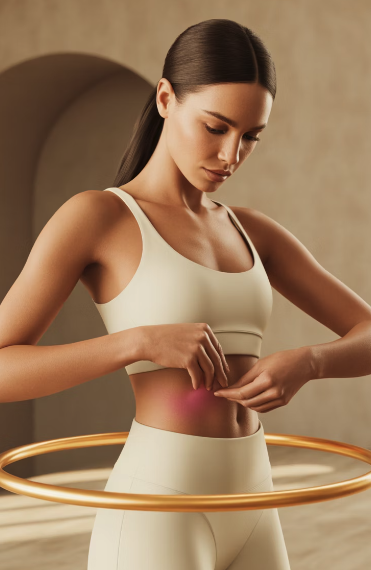 훌라후프는 골반을 중심으로 원을 돌리기 때문에, 복부 전면, 옆구리(측면 복근), 허리 심부근육까지 동시에 자극됩니다. 뱃살의 주요 적인 내장지방과 피하지방 모두에 자극이 가해지는 셈이죠.
