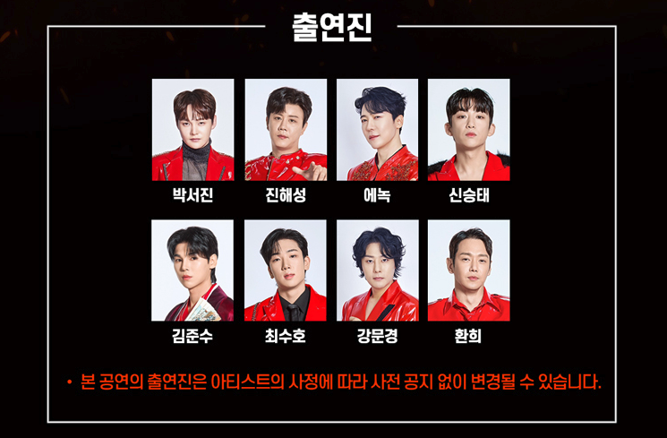 ※ 출연진은 지역별로 다를 수 있으며, 사전 공지 없이 변동될 수 있습니다.