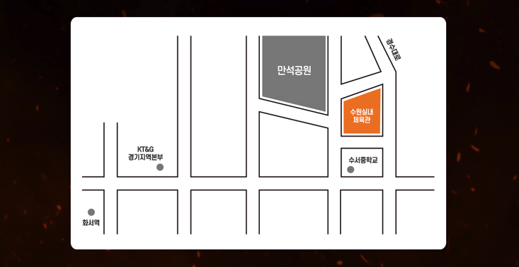 - 주소: 경기도 수원시 장안구 경수대로 893 (수원종합운동장 내)