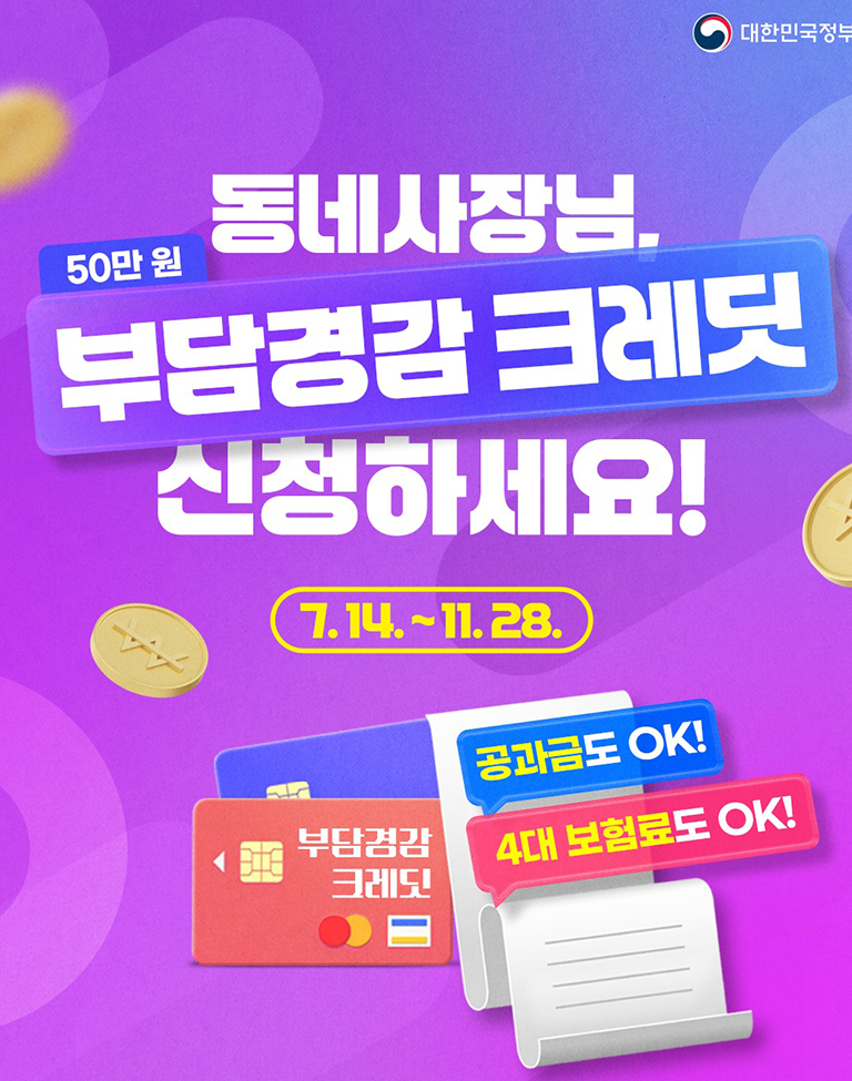 | 지원 금액 | 최대 50만 원 부담경감 크레딧 |