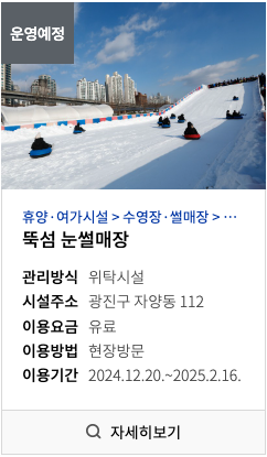 • 놀이기구 및 기타체험 활동은 눈썰매장 운영 사정에 따라 일부 시설이 변경되거나 운영되지 않을 수 있음
