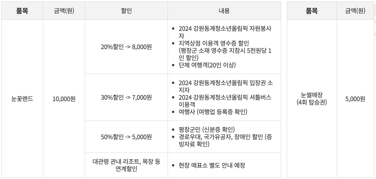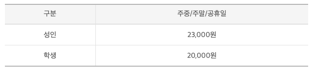 - 이용 요금: 성인 23,000원원, 어린이 20,000원.