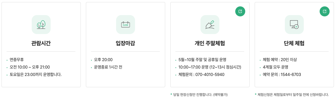 - 운영 시간: 오전 08:00 ~ 23:00(입장매표22:00까지)