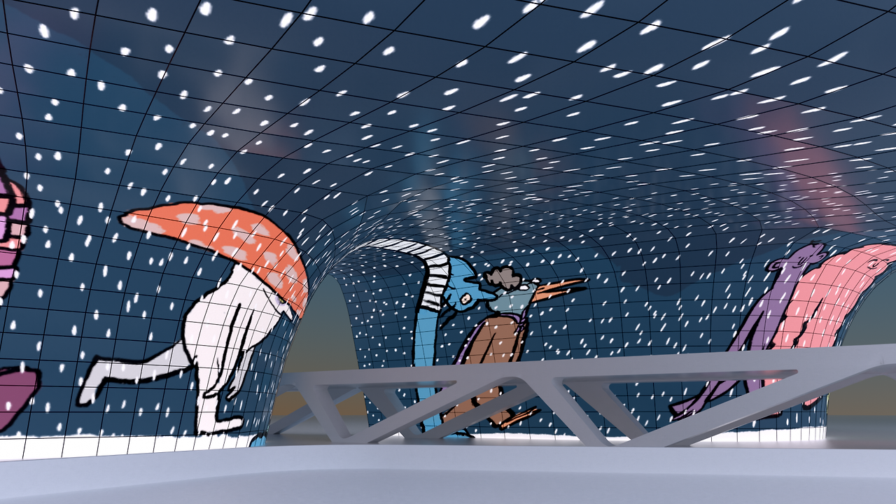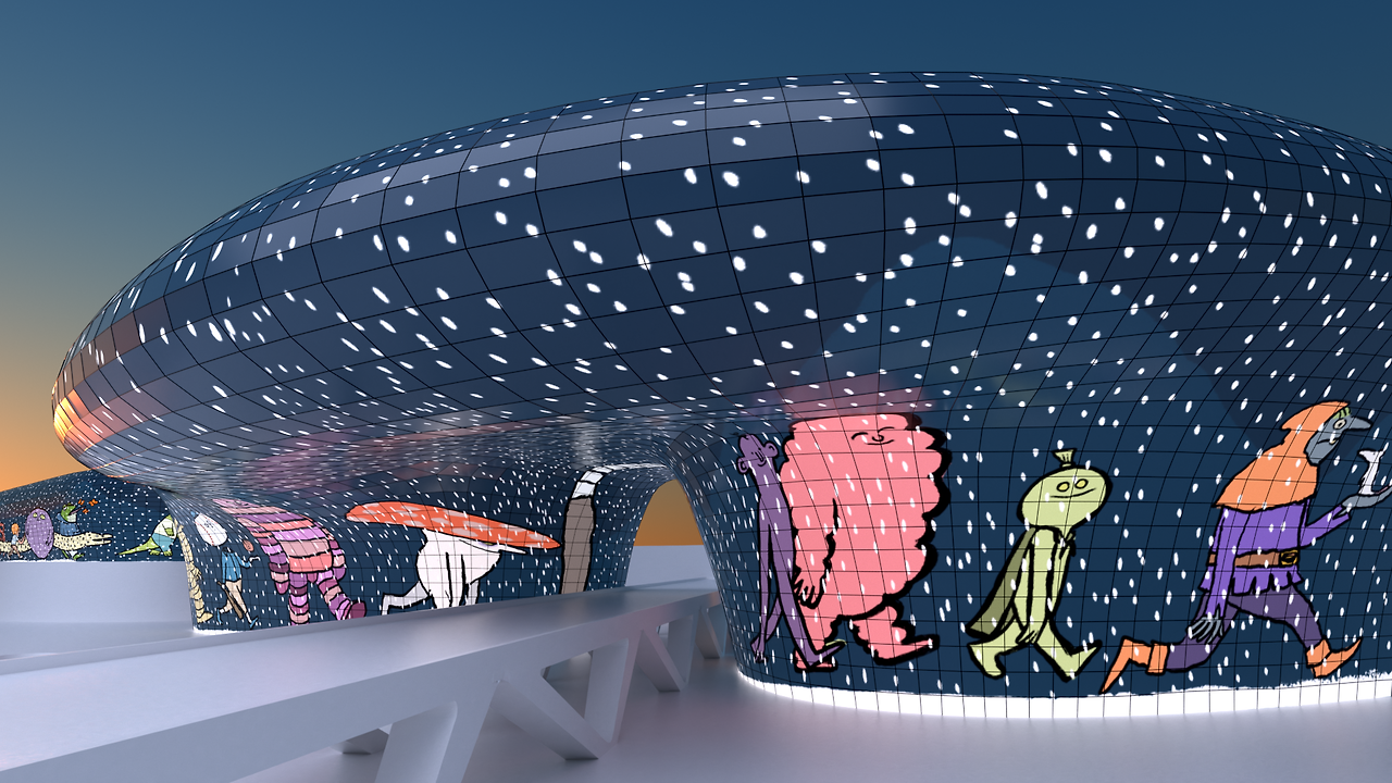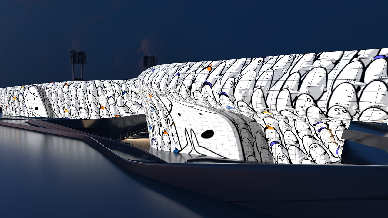 DDP의 독특한 외관을 활용해 다양한 표정의 얼굴들을 표현한 클레이메이션 작품입니다. 한국적인 미소의 해석이 돋보이는 이 작품 은 CG와의 조화를 통해 더욱 생동감 있게 표현되었습니다. 미소의 힘을 통해 서로를 위로하고 응원하는 메시지를 전달하며, 관람객들에게 따뜻한 감동을 선사할 것입니다.