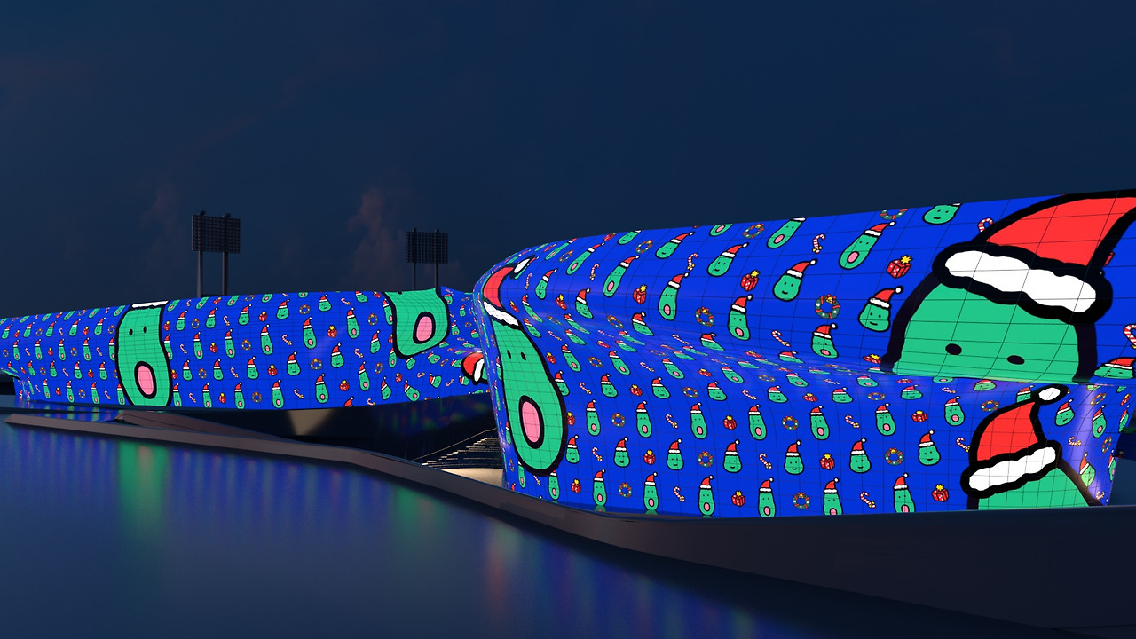 <카운트다운> 특별 미디어파사드는 자정이 다가올 때, 역동적으로 춤추는 계절 카운트다운과 숫자들이 화려한 애니메이션을 이루며 패턴을 형성합니다. 안그라픽스가 참여하여 한글의 조형적인 매력을 담아낸 이 콘텐츠는 독창적인 타이포그래피와 시각적 요소들이 조화를 이루는 방식에 대한 기대감을 자아냅니다.